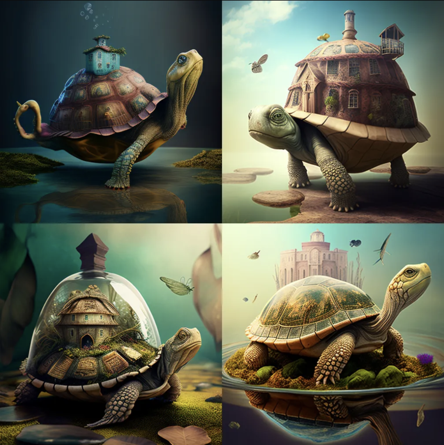 Prompt: Turtle in Alice In Wonderland, surrealism