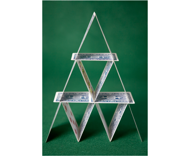 As a result, ALL the people behind him in the long line of lending also default on their loans in one big house of cards collapse. Each one was dependent on the one in front of them in the lending line. Thankfully, halfway down the line, one prudent individual kept enough money saved in excess of her debt obligation, so instead of defaulting, she is able to service her debt. This has the effect of stopping the chain reaction, because from that point on in the remaining line of lenders, everyone else is saved from default.